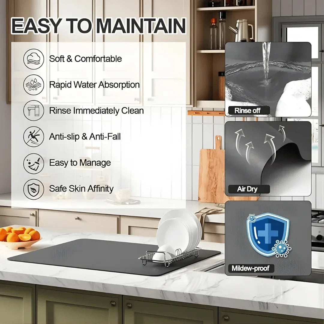 No more slipping and sliding! Our mat stays securely in place, ensuring your dishes stay put while drying.